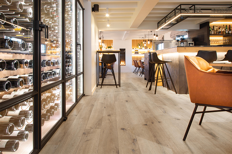 Onderaan elke vloer bevindt zich een geïntegreerde kurkonderlaag. Deze creëert enerzijds een aangenaam loopcomfort en zorgt anderzijds voor een snelle, eenvoudige installatie. Dankzij deze duurzame onderlaag hoeft de ondergrond niet volledig geëgaliseerd te worden en is een extra ondervloer bijgevolg overbodig.