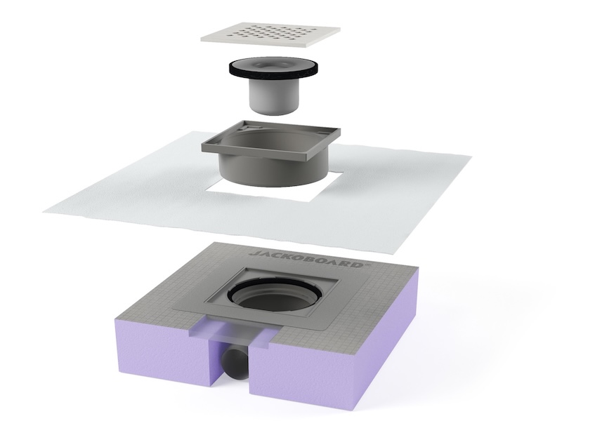 JACKOBOARD® Aqua Connect – Praktische installatiehulp voor hellende dekvloeren met geïntegreerde afvoer
