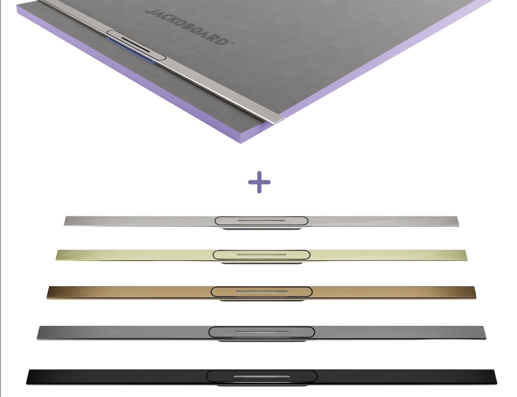 JACKOBOARD® Aqua Color&Cut – betegelbaar douche-element & gekleurde, inkortbare designgoot