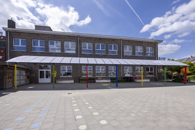 De nieuwe speelplaatsoverkapping heeft als formaat 25 meter lang en 5,20 meter diep, wat ruime beschutting biedt tijdens regenachtige of zonnige dagen. BOzARC ontwierp en produceerde de constructie.