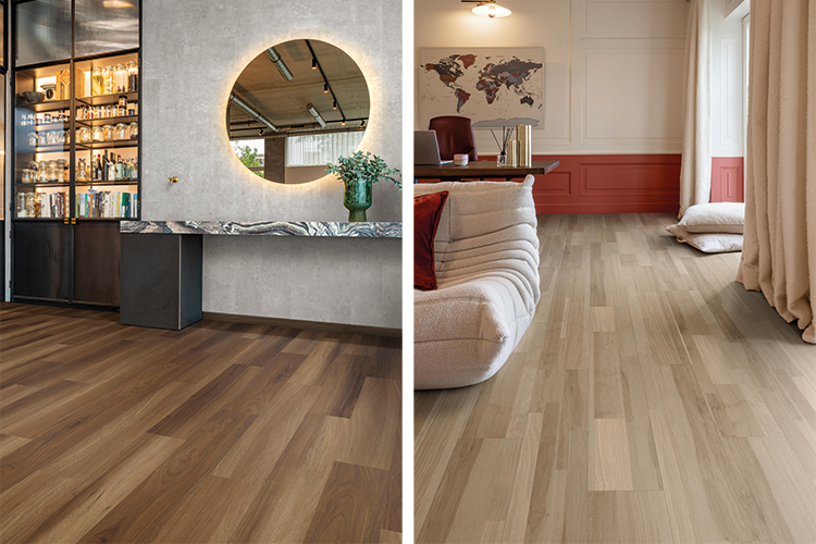 - Boven de kern bevindt zich een comfortlaag voor extra warmte en geluidsreductie en de decorlaag die niet te onderscheiden is van echt hout of steen.