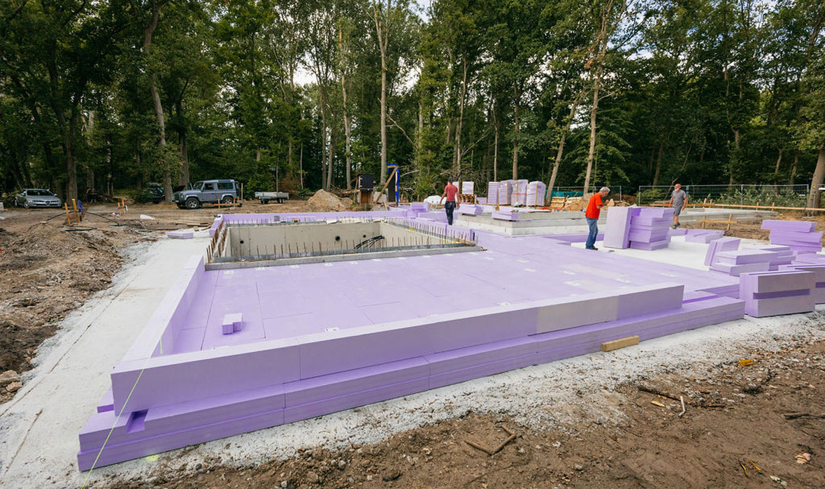 “De grootste uitdaging waren de vele hoeken en kanten van dit bouwproject want standaard isolatieplaten zijn daar niet voor ontworpen. Dankzij het JACKODUR® Atlas systeem werd de plaatsing een fluitje van een cent. Alles is genummerd en de bijgeleverde tekeningen leggen uit waar we moeten beginnen. Een JACKON-medewerker was ter plaatse om ons op de juiste weg te helpen. Een belangrijk voordeel voor mij was dat ook de randbekisting in het bouwpakket zit waardoor er een perfecte ‘isolatiekuip’ ontstaat voor mijn betonplaat. Stel dat ik hiervoor twee verschillende systemenzou moeten gebruiken, is het risico op koudebruggen en rendementsverlies hoog. Daarenboven heeft de totale plaatsing slecht een dag werk gekost.”, besluit Frank.