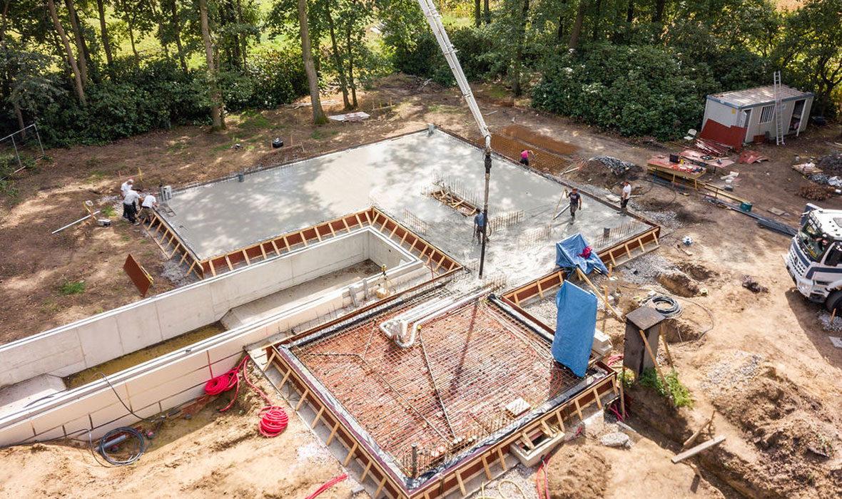 Het finale resultaat is een volledige geïsoleerde vloerplaat losgekoppeld van de ondergrond die de verwarming en koeling wordt van het gebouw en die perfect tot op de centimeter klopt met het Architectuurplan met aan de buitenkant een geïsoleerde ringbalk voor de paramentgevel.